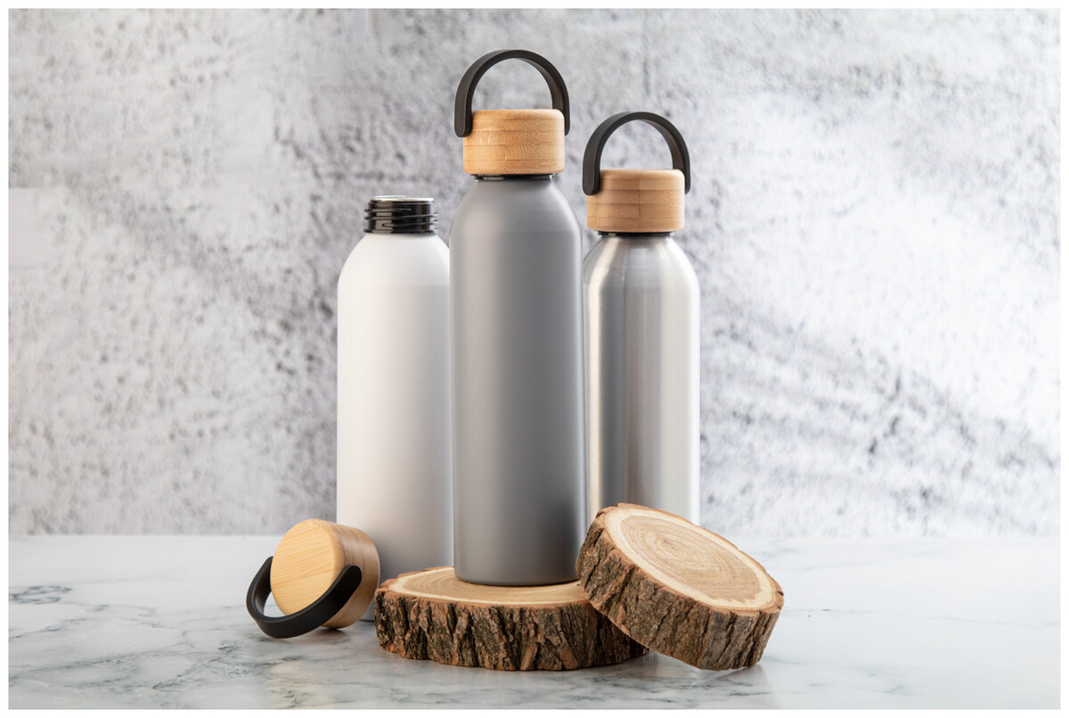 Hliníková láhev s bambusovým víčkem, 600 ml.