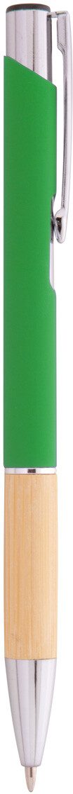 Hliníkové kuličkové pero s bambusovým úchopem, pogumovaným povrchem a modrou náplní. Se speciální vrstvou pro zrcadlové laserové gravírování.