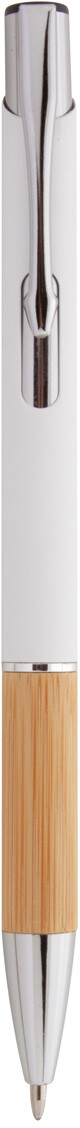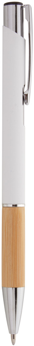 Hliníkové kuličkové pero s bambusovým úchopem, pogumovaným povrchem a modrou náplní. Se speciální vrstvou pro zrcadlové laserové gravírování.