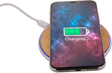 Bezdrátová rychlonabíječka (15W) v pouzdře z recyklovaného hliníku a bambusu. Včetně USB nabíjecího kabelu.