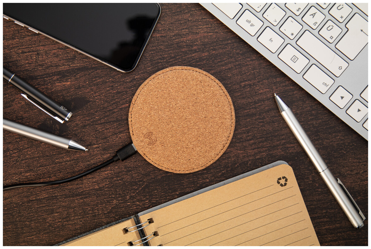 Bezdrátová rychlonabíječka s přírodním korkem (10W) se spodní částí z PU kůže. Včetně USB nabíjecího kabelu.