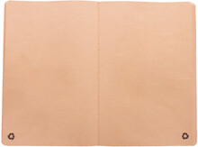 Blok A6 s deskami z recyklovaného papíru, šitý a 60 prázdnými listy z recyklovaného kraftového papíru.