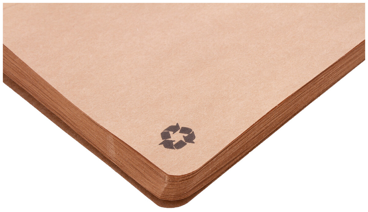 Blok A5 s deskami z recyklovaného papíru, šitý a 60 prázdnými listy z recyklovaného kraftového papíru.