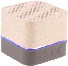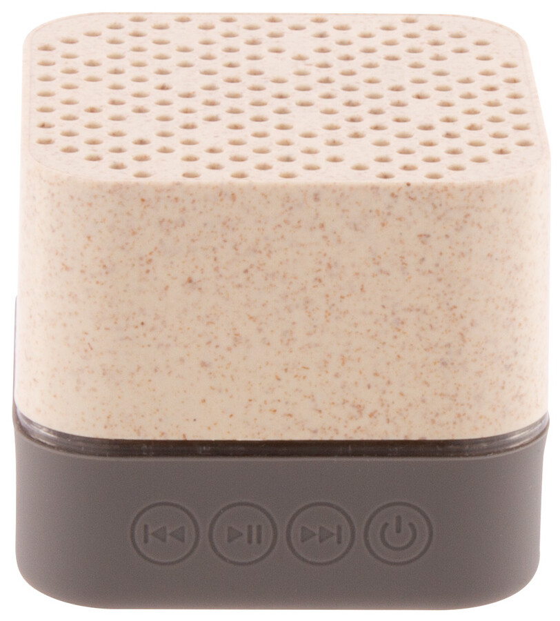 Bezdrátový reproduktor v ekologickém plastovém krytu z pšeničné slámy s gumovou spodní částí, vícebarevným LED světlem a vestavěnou dobíjecí baterií. S funkcemi handsfree volání a přehrávače micro SD. Včetně nabíjecího kabelu USB.