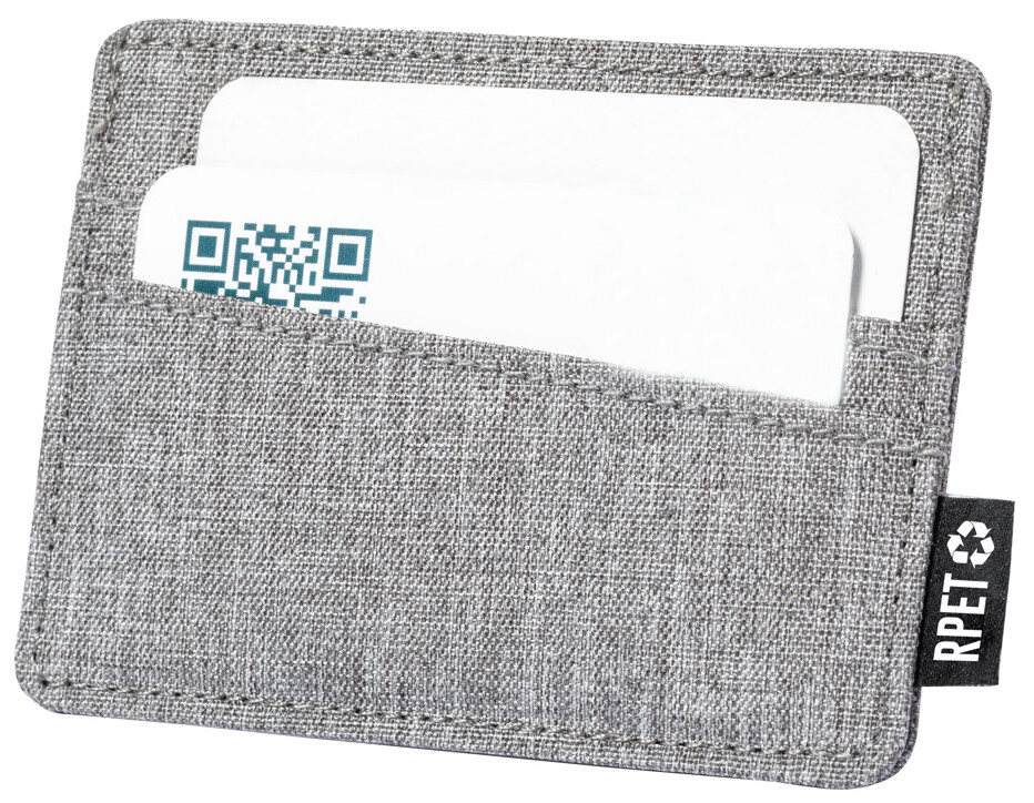 Polyesterový RPET obal na kreditní karty se 3 přihrádkami na karty. S výrazným štítkem RPET.