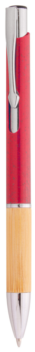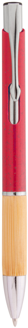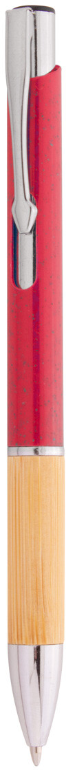 Ekologické plastové kuličkové pero z pšeničné slámy s bambusovým úchopem a kovovými částmi. S modrou náplní.