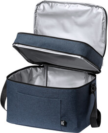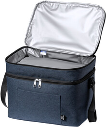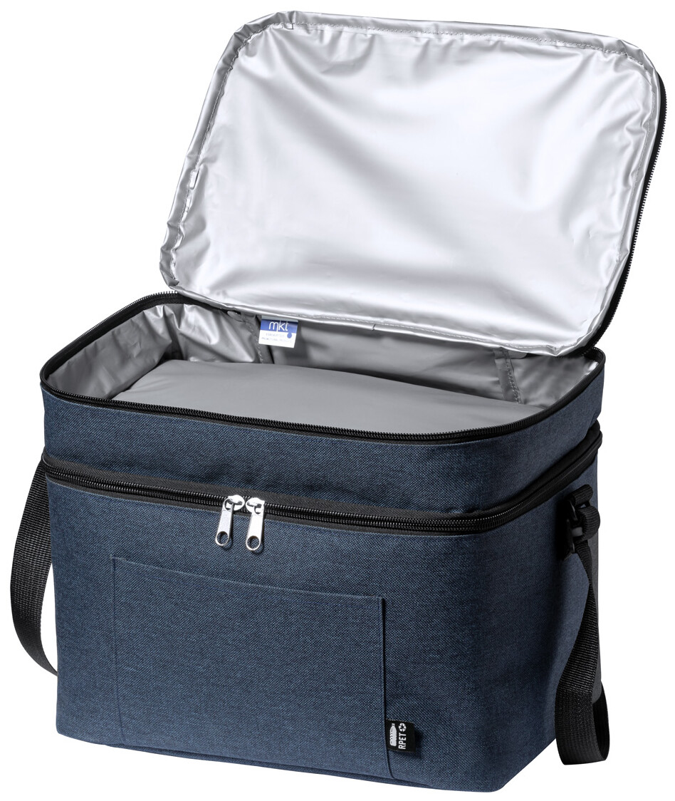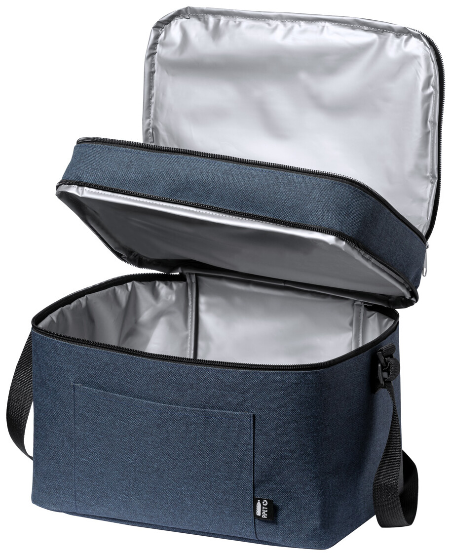 Chladicí taška z 600D RPET polyesteru s PEVA výstelkou, se 2 přihrádkami na zip a nastavitelným ramenním popruhem. S výrazným štítkem RPET.