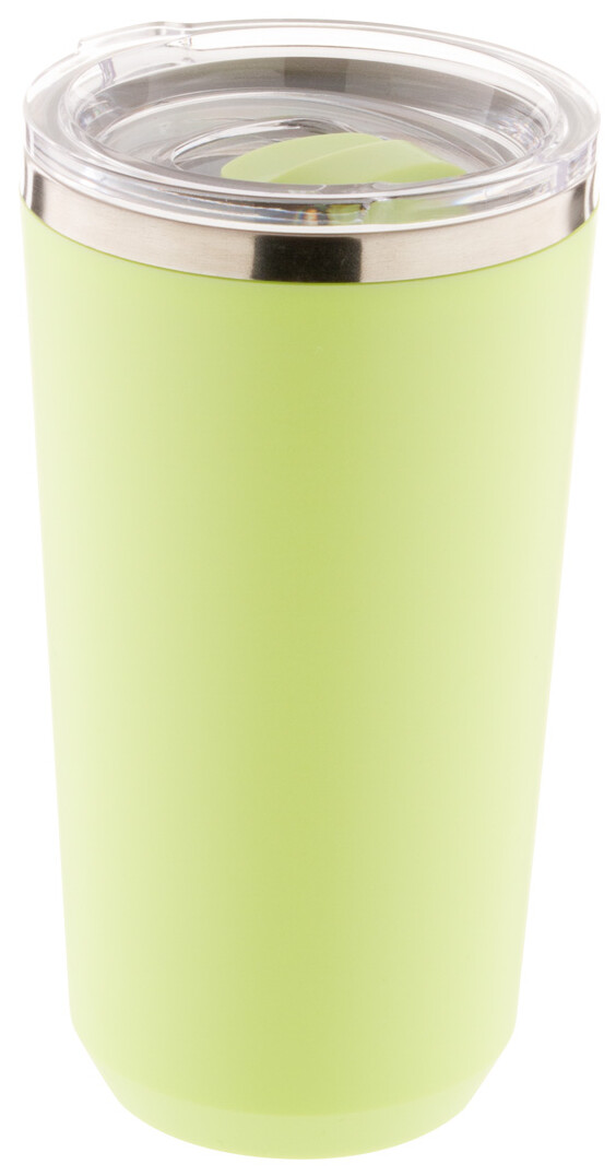 PP plastem pokrytý dvoustěnný, nerezový termo hrnek s víčkem na pití. 500 ml.