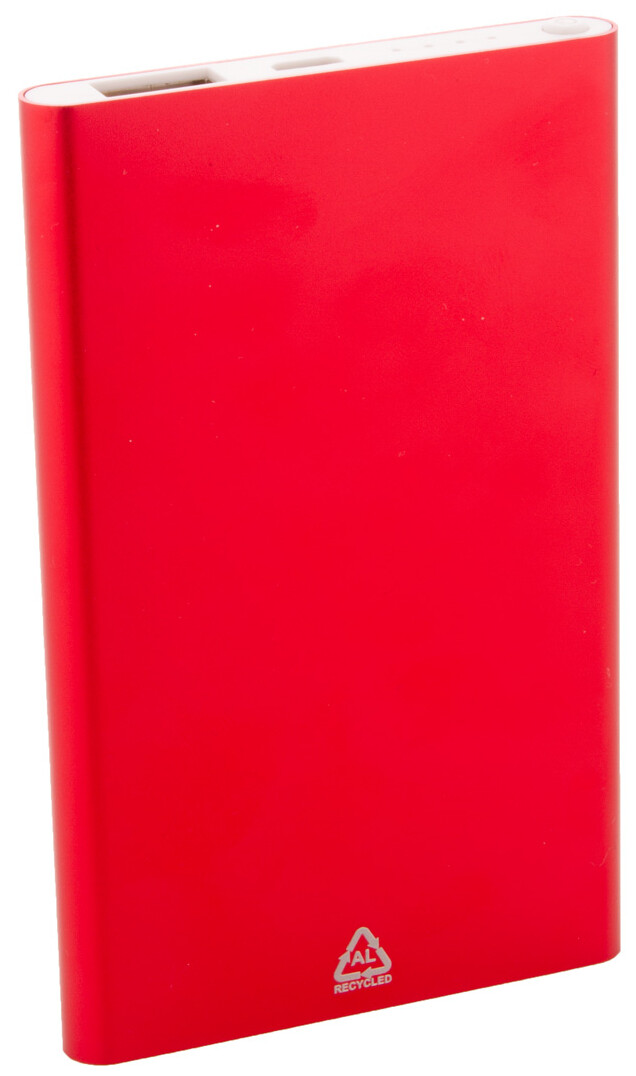 USB power banka v pouzdře z recyklovaného hliníku s 4000 mAh baterií. S 1 portem USB a 1 portem USB-C pro nabíječku. Vstupní port USB-C. Včetně USB nabíjecího kabelu.