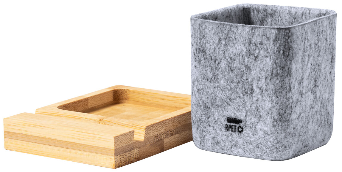 Bambusový stolní organizér se stojánkem RPET na mobilní telefon a na pera.