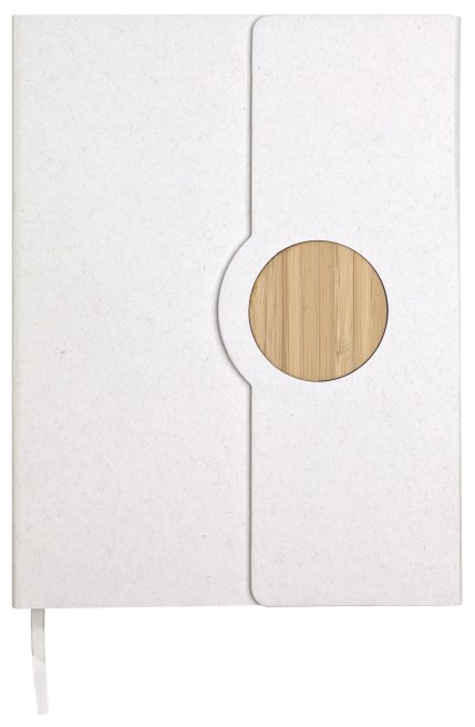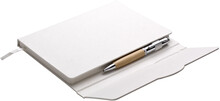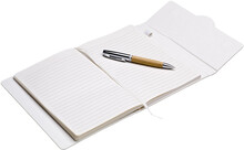 Poznámkový blok, zápisník v kartonových deskách, vyrobený ze separovaných kartonů od mléka a propiskou s bambusovým úchopem. V natur papírové dárkové krabičce.