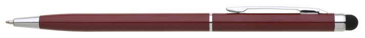 Gumovací plastová propiska v červené metalické barvě a stříbným klipem s koncovkou pro gumování napsaného textu. Náplň modrá, gumovací, s kratší životnosti než běžné kuličkové náplně.