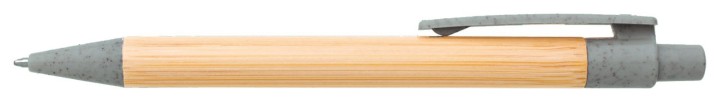 Bambusové tělo propisky s doplňky z plastu s podílem slámy. Náplň modře píšící velkoobsahová.