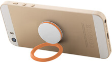 Kulatý, plastový stojánek na mobil s kroužkem na prst se samolepícím stranou.