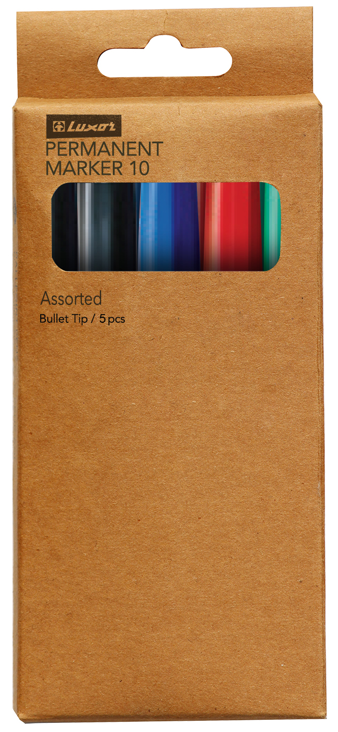 Ekologická sada LUXOR 5 permanentních popisovačů, které jsou na bázi alkoholu, navíc neobsahují xylen a toulen, Popisovač má pevný plstěný hrot, kdy šíři stopy lze ovlivnit tlakem na hrot. ideální pro použití v interiéru i exteriéru, na většinu povrchů, jako je dřevo, kov, sklo, plast, keramika, kůže atd. V sadě se nachází 2 x černý, 1 x červený, 1 x zelený a 1 x modrý popisovač.