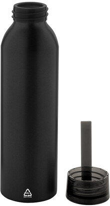 Láhev z recyklovaného hliníku s víčkem v odpovídající barvě a silikonovým popruhem, 600 ml.