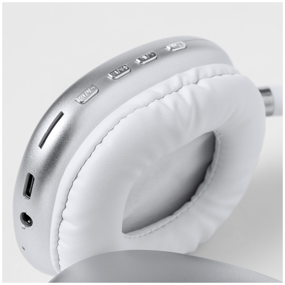 Bezdrátová sluchátka z plastu ABS s náušníky z PU kůže a vestavěnou dobíjecí baterií. S funkcí hands-free volání a přehrávání MP3 z micro SD. Včetně 3,5 mm audio konektoru Jack a nabíjecího kabelu USB.