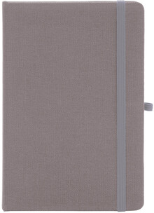 Blok potažený recyklovanou bavlnou s 80 linkovanými listy z recyklovaného papíru. Se záložkou v odpovídající barvě, gumičkou a držákem na pero. Velikost A5.