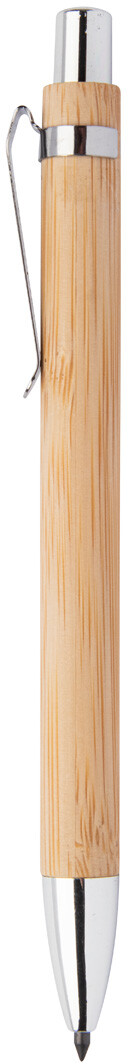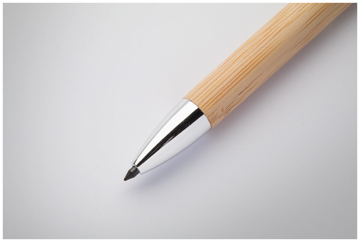 Bambusové bezinkoustové pero s kovovými částmi. S hrotem z kovové slitiny, který oxiduje papír. Toto pero píše podobně jako tužka a navíc je stíratelné.