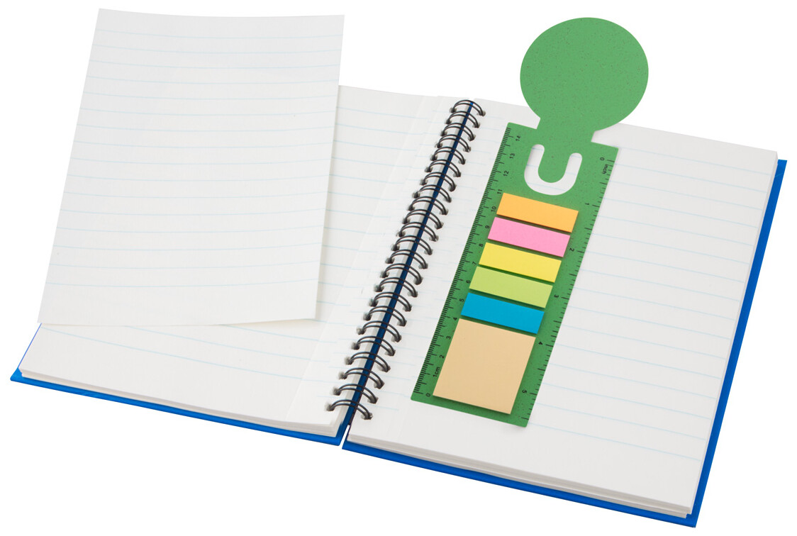 Ekologická plastová záložka a pravítko z pšeničné slámy s 25 lepicími papírky a 125 popisovači stránek (v 5 různých barvách).