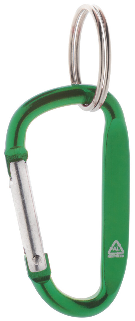 Karabina z recyklovaného hliníku s kovovým kroužkem na klíče.