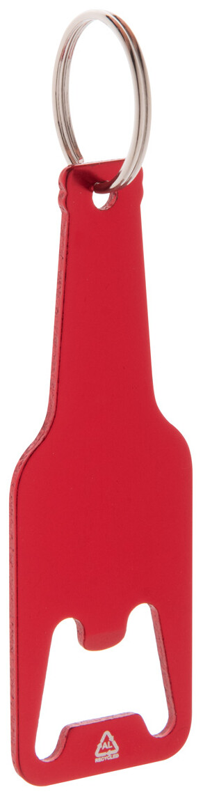 Otvírák na láhve z recyklovaného hliníku s kovovým kroužkem na klíče.