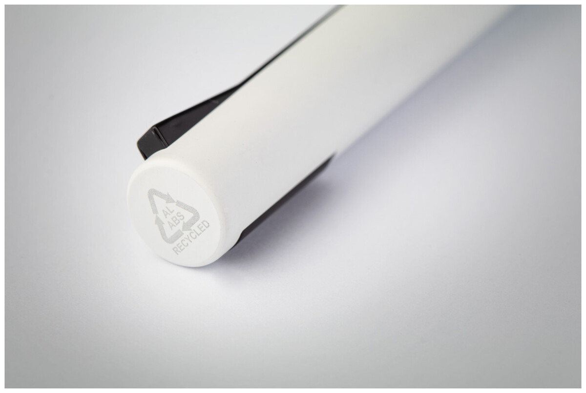 Kuličkové pero z recyklovaného hliníku v matné metalické barvě s horní částí z recyklovaného ABS a speciálním klipem. S modrou náplní.