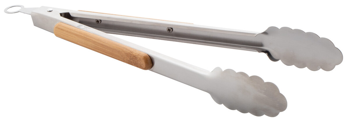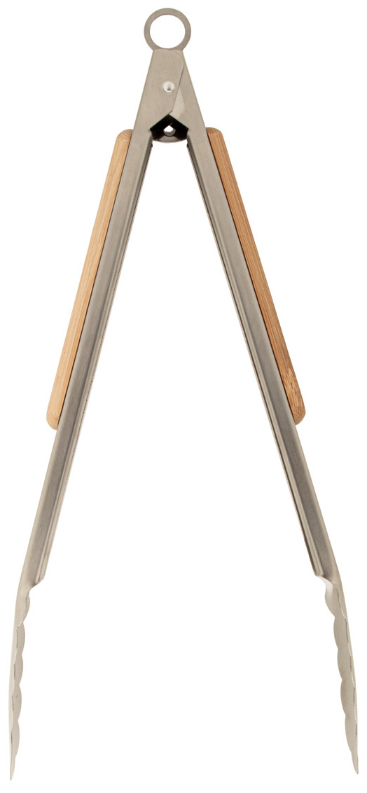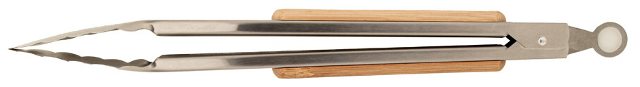 Nerezové kleště na grilování s bambusovými držadly a uzamykacím mechanismem.