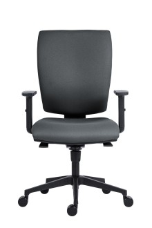 Cena je včetně područek AR 11, židle s čalouněným sedákem a opěrákem, výškové nastavení opěráku mechanismem up-down, jednopákový synchronní mechanismus SYN-K se čtyřnásobnou aretací a automatickým nastavením síly protiváhy, nylonová černá báze, kolečka pr. 60 mm univerzálně použitelná pro všechny povrchy, nosnost 150 kg, český výrobek, záruka 36 měsíců