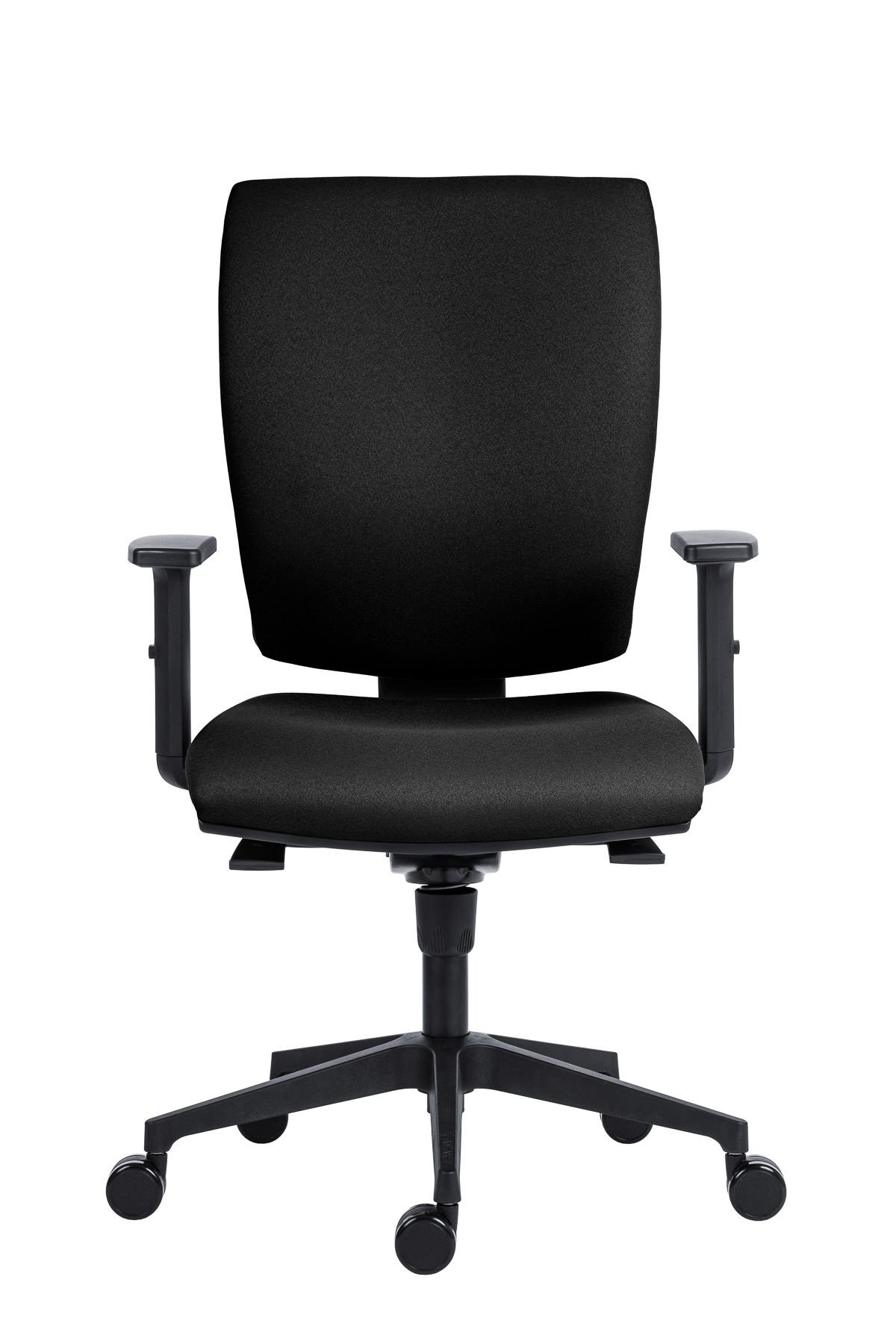 Cena je včetně područek AR 11, židle s čalouněným sedákem a opěrákem, výškové nastavení opěráku mechanismem up-down, jednopákový synchronní mechanismus SYN-K se čtyřnásobnou aretací a automatickým nastavením síly protiváhy, nylonová černá báze, kolečka pr. 60 mm univerzálně použitelná pro všechny povrchy, nosnost 150 kg, český výrobek, záruka 36 měsíců