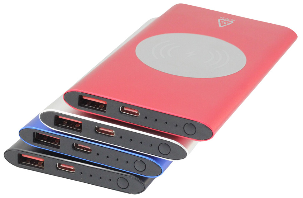 USB power banka z recyklovaného hliníku s vestavěnou bezdrátovou rychlonabíječkou (15W) a 4000 mAh baterií. S 1 portem USB a 1 portem USB-C pro nabíječku. Vstupní port USB-C. Včetně USB nabíjecího kabelu.
