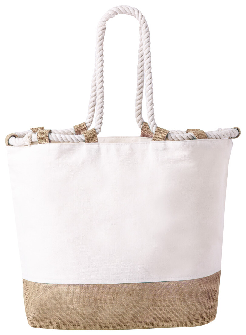 Dvoubarevná plážová taška z juty a bavlny s uchy z pletené šňůry, 280 g/m2.