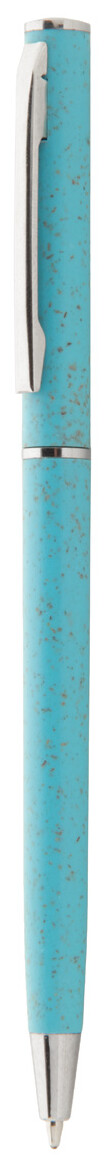 Ekologické plastové kuličkové pero z pšeničné slámy s chromovými detaily. S modrou náplní.