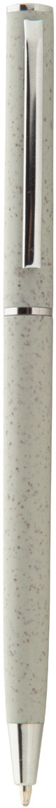Ekologické plastové kuličkové pero z pšeničné slámy s chromovými detaily. S modrou náplní.
