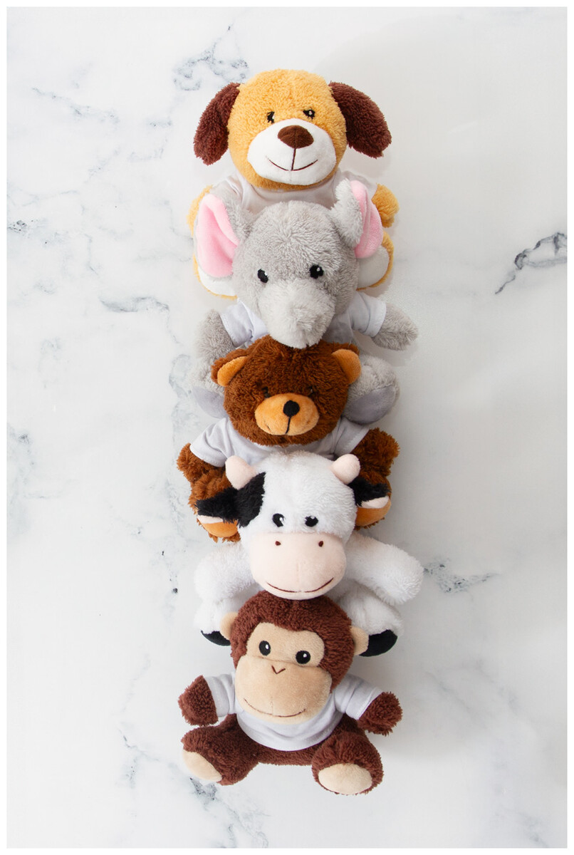 RPET plyšová kráva s tričkem z RPET polyesteru na potisk.
