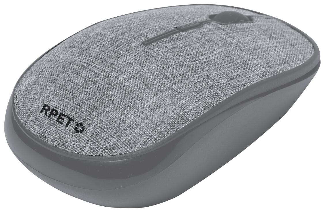 Bezdrátová optická myš s krytem pokrytým polyesterem RPET. Funguje na 1 AA baterii, dodává se bez baterie.