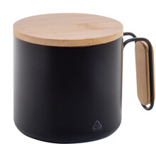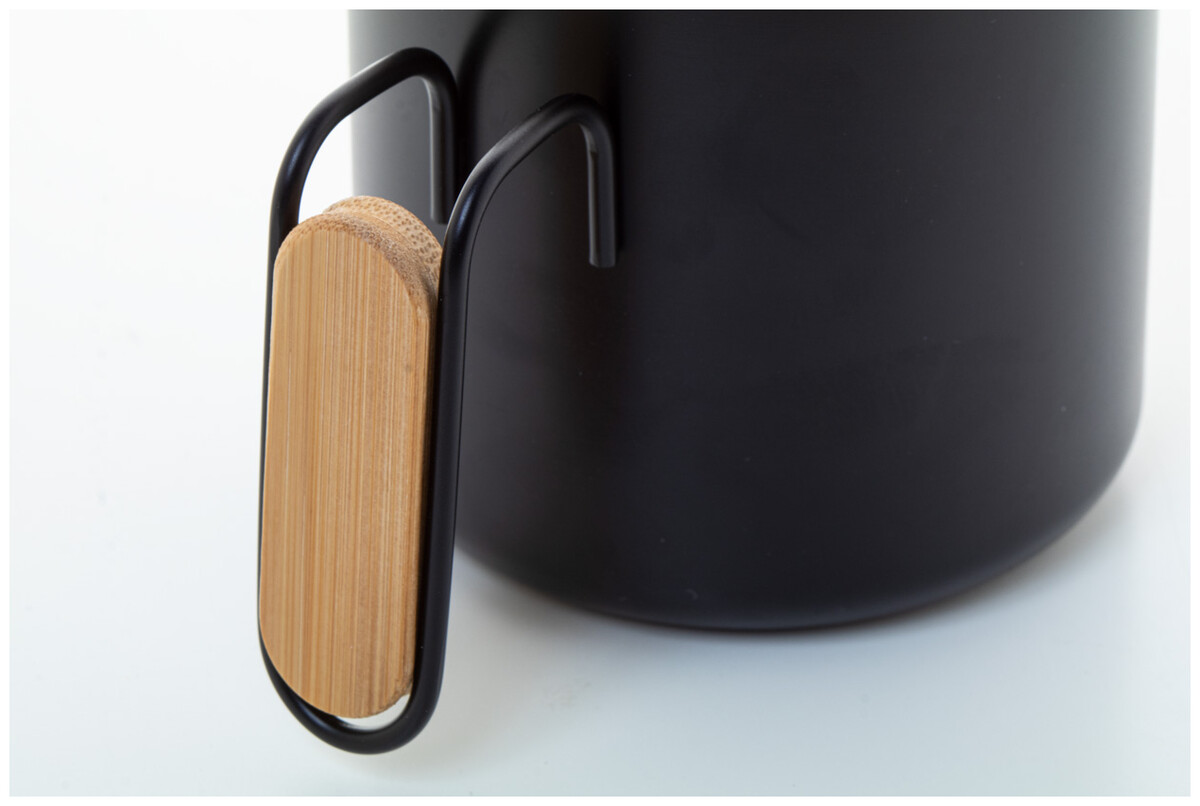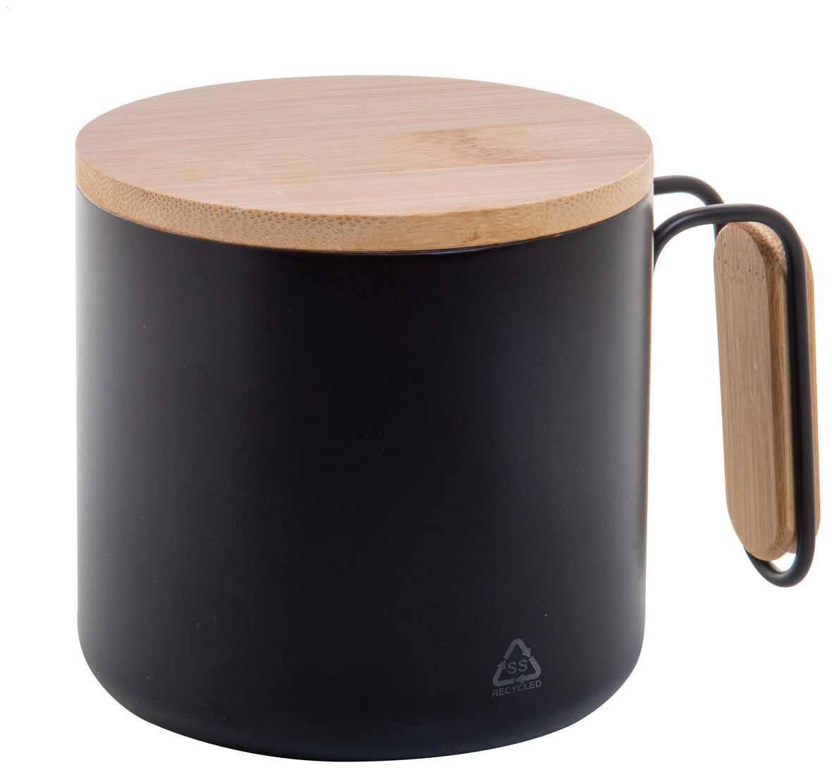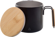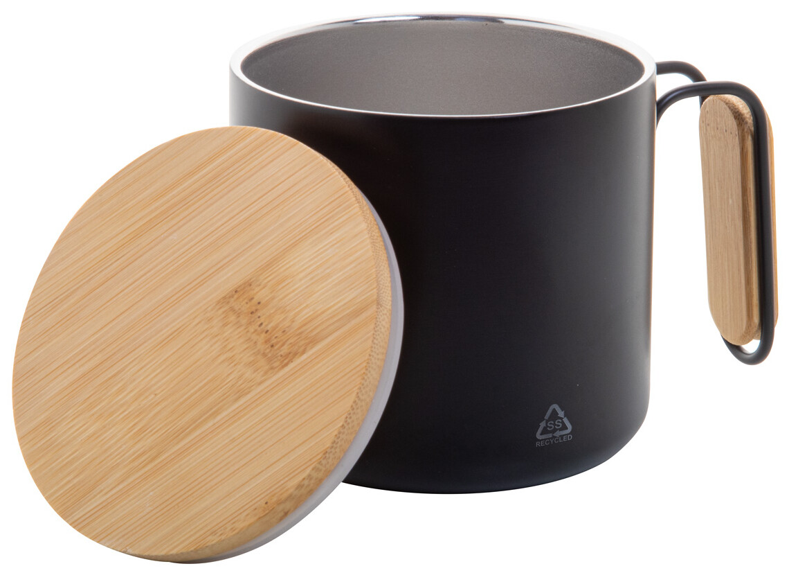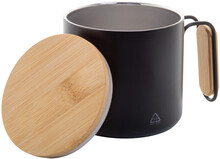 Dvoustěnný termo hrnek z recyklované nerezové oceli s bambusovým víčkem a rukojetí. 300 ml.
