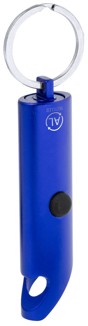 Mini svítilna z recyklovaného hliníku se 3 LED diodami, otvírákem na lahve a kroužkem na klíče. S knoflíkovou baterií.