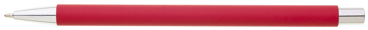 Tenká, jednoduchá propiska s červeným pogumovaným tělem a chromovými doplňky. Náplň X20, modře píšící.