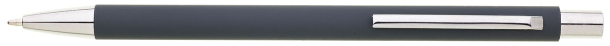 Tenká, jednoduchá propiska s šedým pogumovaným tělem a chromovými doplňky. Náplň X20, modře píšící.
