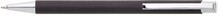Černá kovová propiska s jemně rýhovaným povrchem.