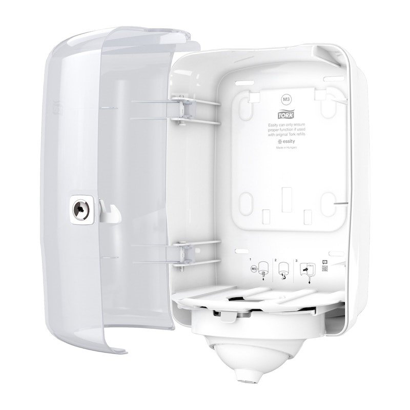 Zásobník na role středové odvýjení Tork Reflex Mini 473177, bílý, systém M3 je ideální pro profesionální prostředí, kde je potřeba hygienické a úsporné řešení utírání rukou i povrchů. Díky výdeji po jednom útržku a otočné hlavici lze papír odebírat pohodlně z jakéhokoli úhlu a snížit spotřebu až o 37 %.