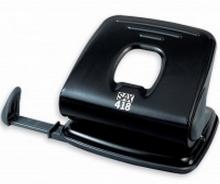 Stolní celokovový děrovač. Děrovač s kapacitou až 25 listů, průměr otvoru 5,5 mm, rozteč otvorů 80 mm. Plastový příložník. Barevné provedení: černé.