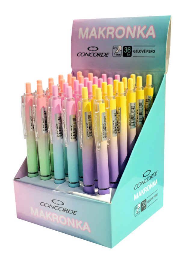 | 301.001 | Gelové pero CONCORDE Makronka, asort barev | 18,45 Kč | 22,32 Kč | 1 ks | |||