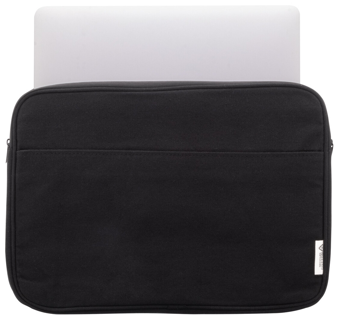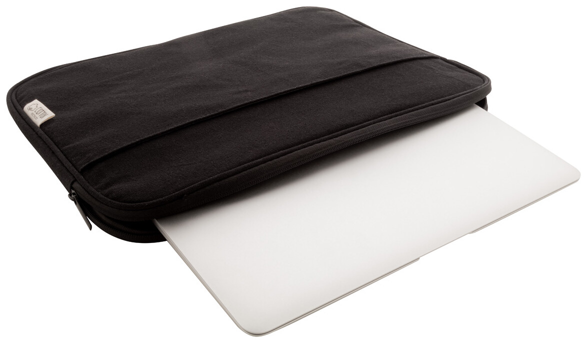 Plně polstrovaná taška na notebook z recyklovaného plátna s přihrádkou na zip a přední kapsou. Vhodné pro notebooky do 15". 70% recyklované bavlny a 30% RPET polyesteru. S výrazným štítkem z recyklované bavlny.