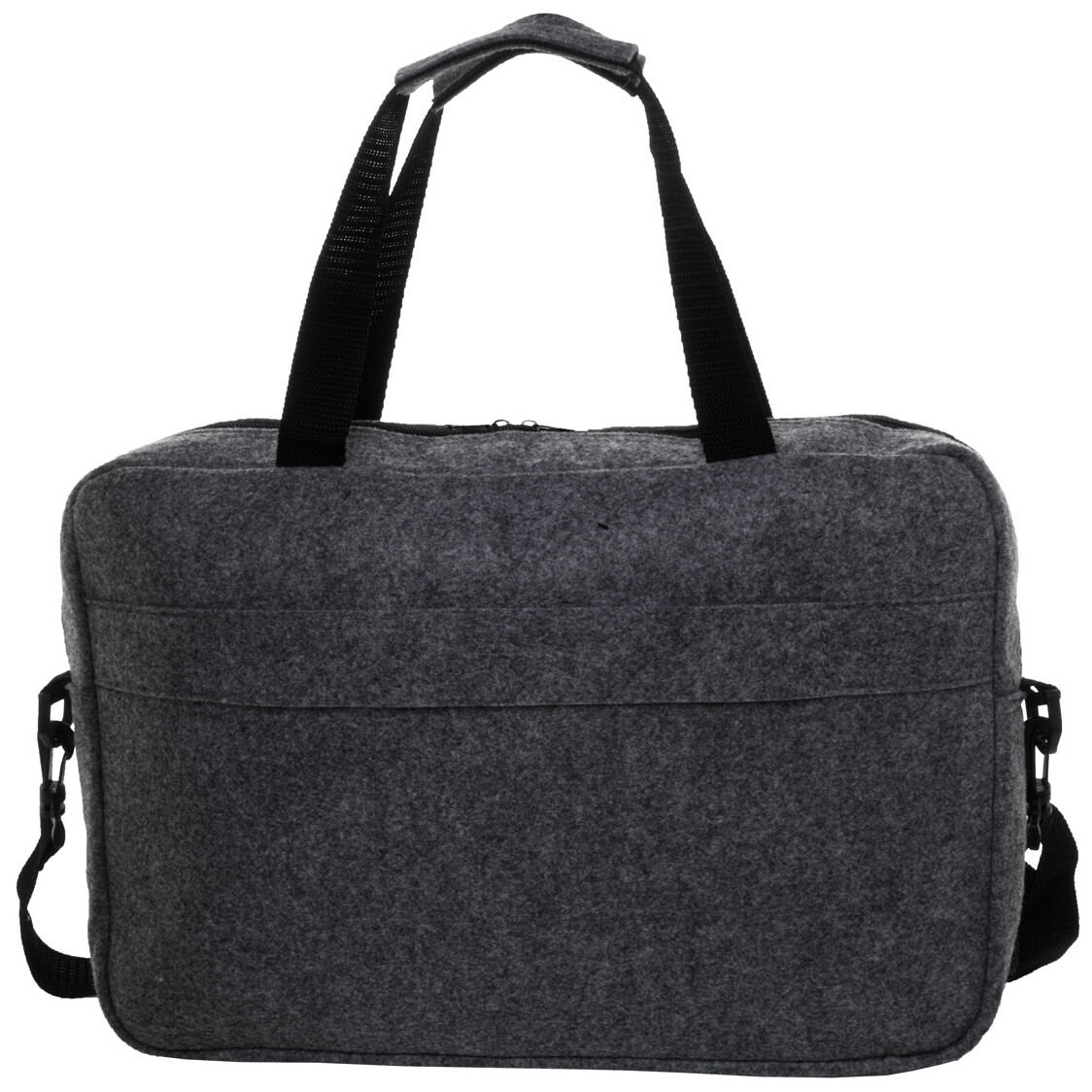 Taška na dokumenty z RPET plsti s hlavní přihrádkou na zip a přední kapsou. S přihrádkou na notebook (15"), popruhem na vozík a nastavitelným ramenním popruhem. S výrazným štítkem RPET.