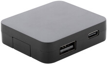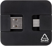 USB hub vyrobený z recyklovaného ABS plastu se 2 USB a 2 USB-C porty. Se sklopnými konektory USB a USB-C. USB 2.0.