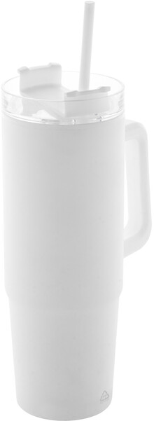 Dvoustěnný termo hrnek z recyklovaného PP plastu s plastovým víčkem na pití a brčkem. 900 ml.