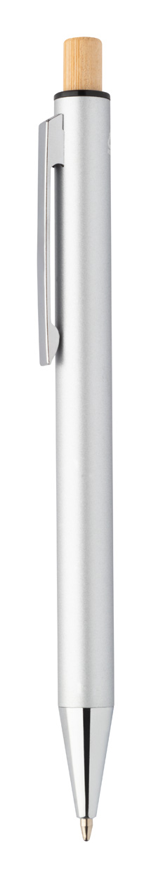 Sada pera z recyklovaného hliníku s kuličkovým perem a mechanickou tužkou s bambusovými knoflíky. S modrou náplní a 0,7 mm tuhy. V kraftové papírové krabici.