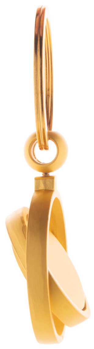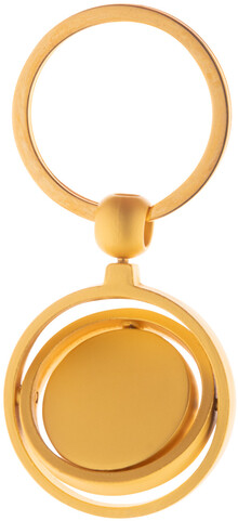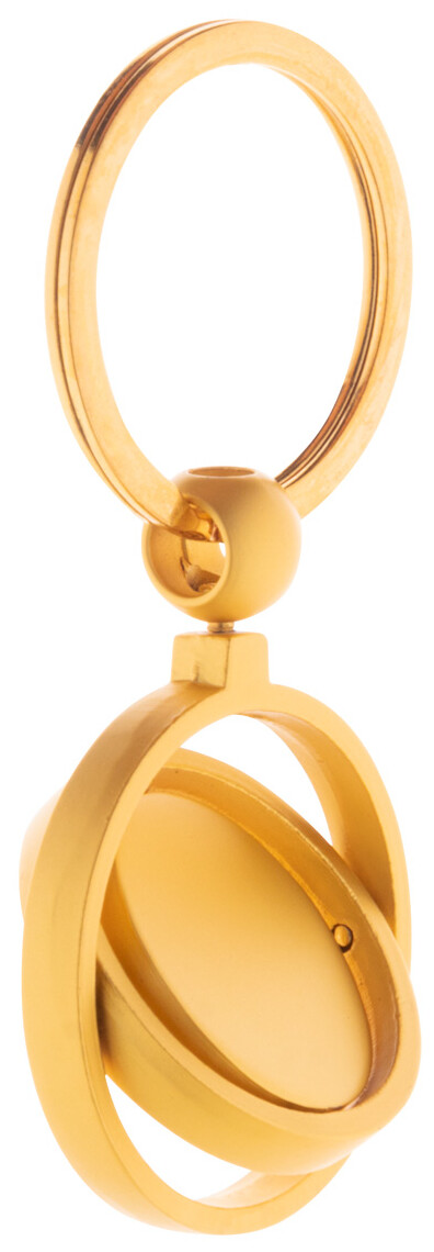 Kovový přívěšek na klíče ve zlatém provedení s otočnou vnitřní částí. V kraftové papírové krabici.